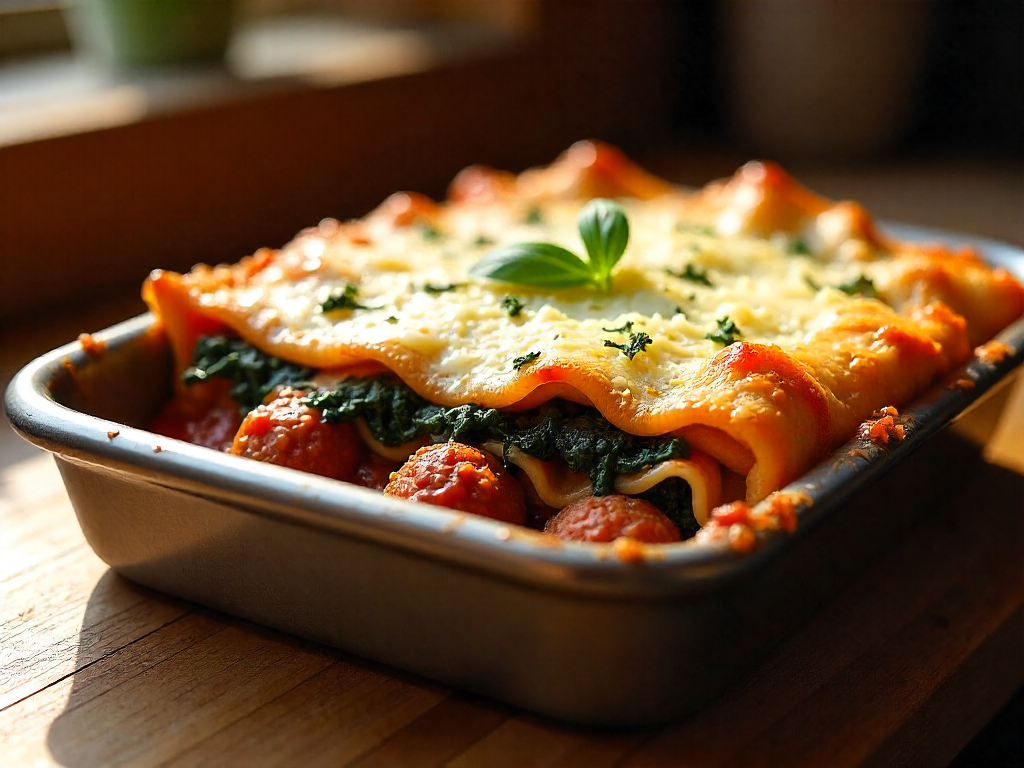 Putting it all together was like a slow-motion food art project. I started with a layer of sauce, then a sheet of noodles, then a spread of meatballs, a dollop of ricotta, and a handful of spinach. Repeat that until I hit the top layer, finishing with a sprinkle of Parmesan and a dash of oregano. I baked it at 375°F (190°C) for 25-30 minutes, keeping an eye on it so the top didn’t get too dark. The key was to let the layers rest for a bit after baking, so the cheese could set and the flavors really meld. When I pulled it out, it was a masterpiece—golden on top, slightly bubbly, and the spinach was just shy of wilting, which I think is the perfect state.
