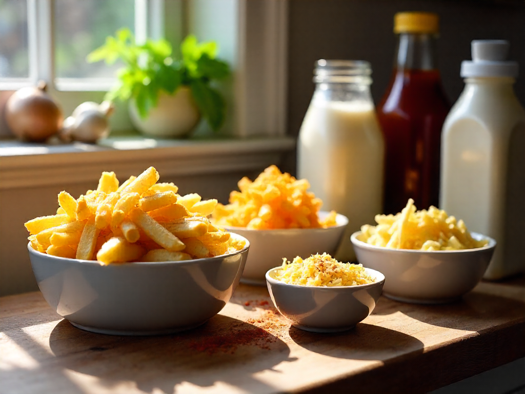 So, the main ingredients? Let’s be real—poutine is all about the trifecta: fries, cheese curds, and gravy. I went with Yukon Gold potatoes for their creamy texture, which gives the fries a slightly sweeter bite than regular russets. For the cheese, I used a mix of sharp cheddar and aged Gouda because the Gouda added a tangy, nutty depth that balanced the richness of the cheese sauce. I also grabbed a bag of frozen French fries as a base, just to save time, but I made sure to toss them with a little oil and salt before frying to keep them crispy. The gravy? I simmered beef stock with finely chopped onion and a splash of Worcestershire sauce, then thickened it with a bit of flour. It’s a simple combo, but the umami really ties everything together. Oh, and I added a pinch of smoked paprika to the gravy for that extra layer of flavor—totally optional, but it adds a nice visual and taste.
